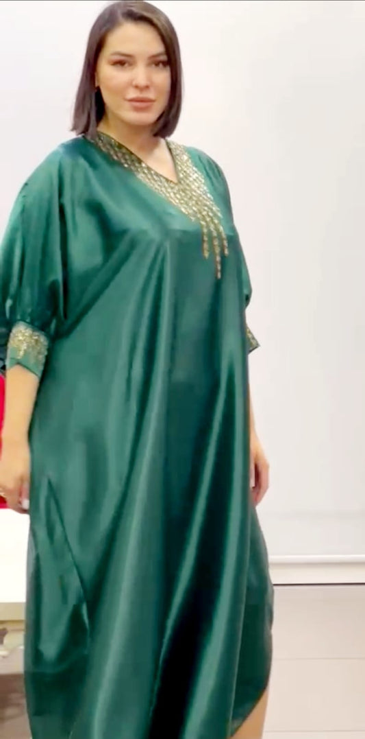 Luxurious Satin Embellished dress - Green
