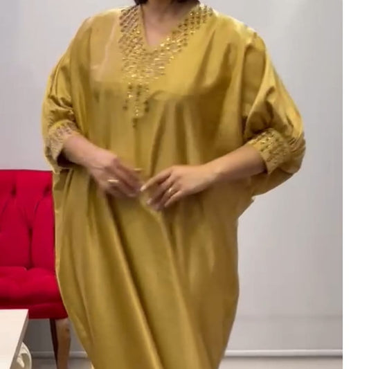Luxurious Satin Embellished dress - Gold